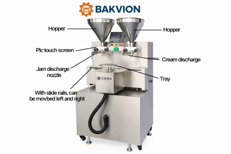 Our cake spreader machine is engineered for precise and uniform application of cream, jam, and fillings. Equipped with dual stainless steel hoppers and independently controlled nozzles, it ensures consistent output for high-efficiency production lines.
