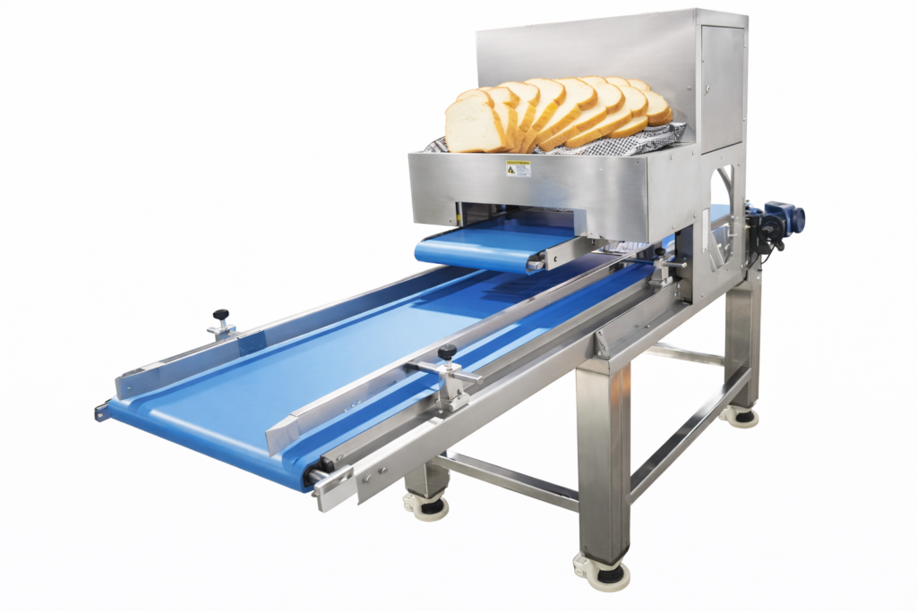 Our toast arranging machine is designed to automatically align and organize sliced bread for seamless entry into the next stage of processing or packaging. With a hygienic stainless steel build and food-grade conveyor belts, it ensures efficiency while maintaining product integrity.
